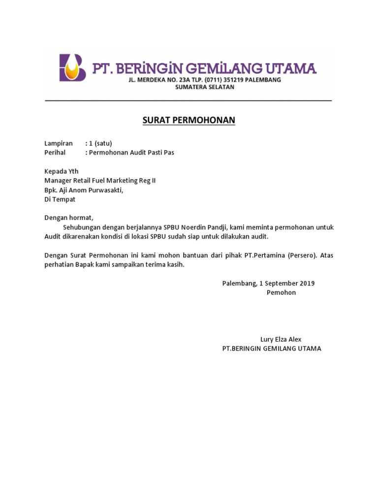 Surat Permohonan Bantuan Audit Pdf
